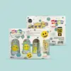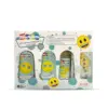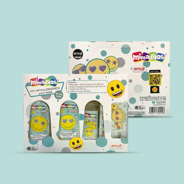 1 Shampoo + baño corporal 250 ml, 1 crema corporal humectante 250 ml, 1 colonia 125 ml y 1 jabón en barra 80 gr.