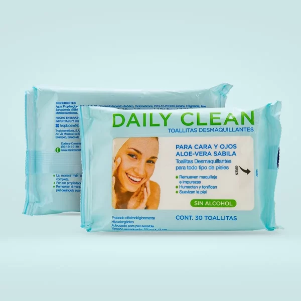 ¡Haz que tu rostro luzca aún más brillante y suave! Las toallitas desmaquillantes Daily Clean contienen propiedades hidratantes que remueven el maquillaje, suciedad e impurezas sin maltratar tu piel. ¡Practicidad y cuidado en un solo producto!